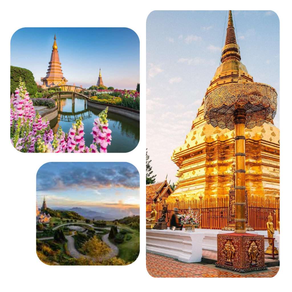 - Doi Inthanon National Park : Thailand’s highest peak, waterfalls, hiking trails, and twin pagodas.